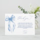 Uttryck din tacksamhet med stil med "Dusty Blue Bow She's Tying The Knot" bröllopsdusch tackkortet. Med en mjuk dammig blå rosett-design och elegant typografi utstrålar detta kort sofistikation och charm. Den graciösa rosetten symboliserar den blivande brudens speciella dag, medan den känsliga färgpaletten skapar en förfinad och tidlös look. Perfekt för att skicka uppriktiga tack till gästerna, detta tackkort lägger till en personlig och minnesvärd touch till firandet, vilket gör det till det perfekta sättet att visa uppskattning för den kärlek och det stöd som delas på en sådan speciell tillställning.