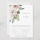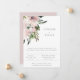 Elegant och enkel typsnittsdesign, bröllopsinbjudan som presenterar akvarellblommor i rosa nyanser med flödande bladverk. Baksidan av kortet har mallutrymme för ytterligare detaljer.