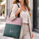 En lek med dammig rosa och djup tealgrön sätter tonen för denna trendiga totebag, där två av säsongens hetaste färger möts i en djärv, feminin kontrast. Ytan är insvept i en elegant, spetsmönstrad textur som ger väskan en förfinad, romantisk känsla, tillräckligt delikat för att se ut som haute couture, men ändå tillräckligt stark för daglig stil. Ett snyggt, bälteinspirerat band förankrar designen i mitten, vilket ger struktur och en modern, boutique-liknande touch.