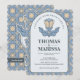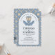 Dammtig blå Art Nouveau bröllopsinbjudan med QR-ko Inbjudningar