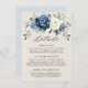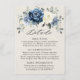 Dammtig blå blomsterbröllopsdetaljkort med elegant bukett av marinblå, kunglig blå, vit, guld, champagne elfenben, rosafärgad ros, ranunculus blomknoppar och salvia gröna eucalyptusblad och elegant akvarellbukett. Vänligen kontakta mig för hjälp med anpassning eller om du behöver någon annan produkt med denna design.