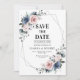 Dammtigt blå mauve eukalyptus geometrisk bröllops spara datumet