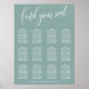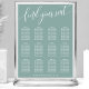 Välkommen dina gäster med denna eleganta dammiga tealiga bröllopsplatskarta. Med en minimalistisk design och modernt typsnitt som säger "hitta din plats", är denna platskarta perfekt för ett sofistikerat och stilfullt bröllop. Den mjuka färgen och rena layouten ger ett förfinat och organiserat utseende, vilket säkerställer att dina gäster enkelt hittar sina platser. Anpassa med era namn och bordarrangemang för att skapa ett unikt och sammanhängande tillägg till er bröllopsdekoration. Denna platskarta rymmer upp till 12 bord, vilket gör den ideal för en välplanerad och elegant fest.