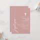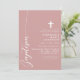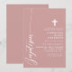 Fira det heliga tillfället för en dopdag med denna eleganta dammgrå rosa inbjudan. Med en minimalistisk design med modernt skrivstil och ett diskret kors är denna inbjudan perfekt för att bjuda in vänner och familj att delta i detta speciella evenemang. Den mjuka färgen och de enkla, rena linjerna ger en touch av sofistikering och elegans, vilket gör den idealisk för en sådan meningsfull fest. Anpassa detaljerna för att skapa en unik och minnesvärd inbjudan för ditt barns dopdag.