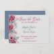 Dammtorrsblå och djup burgunderröd blommig spara datumet