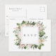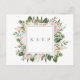Vattenfärg bladgrönska och blommor i vackra nyanser av dammiga mauve och rosa, bröllops-rsvp med sångförfrågan vykort. Anpassa text, typsnitt stil, färg och storlek.