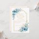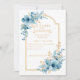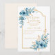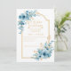 Dammtorrt blå akvarell blomsterguld valv bröllop inbjudningar