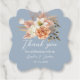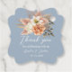 Lägg till en charmig finish till dina bröllopsgavor med denna eleganta tacktagg, med dammig blå akvarellbakgrund och mjuk persikafärgad blomsterbukett. Perfekt för vår-, sommar-, boho- eller rustika bröllop, denna tagg med rundad kant inkluderar era namn och bröllopsdatum för en personlig touch. Hålslagning gör det enkelt att fästa på presentpåsar, ljus eller souvenirer. Del av Dammtorrt blå och persika Bröllopsserien.