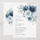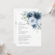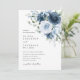 Skapa en tidlös och romantisk bröllsupplevelse med denna eleganta dammiga blå och marinblå akvarellblommiga inbjudan. Med en raffinerad bukett av rosor och mjuk grönska förenar denna design klassiska finkonstblommor med modern, minimalistisk typografi för en otvungen sofistikerad look.