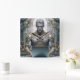Mystischer Krieger mit Hörnern und prunkvoller Goldrüstung arbeitet konzentriert am Laptop in barocker Kulisse. Kraftvolles Motiv für Fantasy Fans, Gamer und Technik Liebhaber mit Sinn für epische Ästhetik.