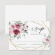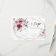 Handmålad akvarellblomma bröllop RSVP-kort med dammiga rosor och burgunderfärgade blommor och grönska buketter och digital guld folie ram. Du kan anpassa formuleringen, typsnitt, färg och storlek på fram- och baksidan av kortet. Detta RSVP-kort är en del av en komplett bröllopssats med matchande brevpapper.