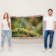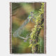 A stunning, high-resolution macro photograph capturing a mating pair of damselflies (Calopteryx or similar species). The insects display brilliant iridescent blue and green bodies and transparent wings, forming the iconic 'wheel' formation on a mossy, water-laden branch. This detailed image highlights the intricate beauty of nature and is perfect for nature lovers, entomologists, and anyone seeking dramatic, vibrant insect art. Ideal for Metal Prints, Canvas, or Framed Posters.