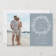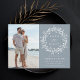 Detta eleganta bröllop sparar datum-kort har en siluettkrans av vildblommor med ert foto och parets initialer på baksidan. För mer avancerad anpassning av denna design, klicka på den BLÅA DESIGNKNAPPEN ovan!