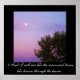 Måne över träd mot dammig rosa och lila himmel