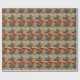 Retro-hälsningskort som skildrar en valp och kattunge som håller tass medan de dansar runt Julgran.