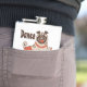 Lekande djurkaraktär leende pug-flicka som pockar och bär rödskinn