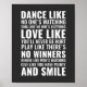 Den här designen med "Dance som ingen som tittar på sjunga som ingen som lyssnar på kärlek som du aldrig ontr spela som om det inte finns några vinnare som beter sig som om mamma ser ge som du har gott om och leende" är en perfekt för kvinnor, manar, familj, föräldrar eller för dig själv med kärlek inspirerande, motiverade eller positiva citat.