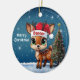 Dancer Celebrate the holiday season with this festive round ceramic red ornament featuring an endearing woodland forest animal cartoon graphic of a cute baby reindeer wearing a Santa hat, and Merry Christmas written in white. Perfect deer with antlers for decorating your tree or as a thoughtful gift, this whimsical doe decor makes a cherished keepsake for years to come. Customize by changing the text, the font, the font color, or remove the text. You can even transfer this design onto other products. Enjoy this design your way! Check out ForestBabies Xmas Deer Collection for matching decorations. 🎄🩌 Dimensions: Diameter: 2.87". Thickness: 0.156". Weight: 1.4 oz. Made of white porcelain. Full-color, full-bleed printing. Printing on both sides. Thread does not come attached/tied.