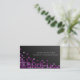 Det här affärskortet med dansarkollens talang för underhållning har en svart bakgrund, där lila-kubformer med flera höljen faller ned på kortets lämnat sida. Ditt namn och din titel visas enkelt att läsa i brev i det övre högernas hörn, medan dina övriga kontaktuppgifter visas på baksidan av kortet, med en subducerad gråskaleversion av frontdesignen som bakgrund. Perfekt för underhållning, scenkonst, show business, talang, talangförmåga, talanghantering, konstnärliga färdigheter, abstrakt, lila, moderna och chic teman, men är generisk nog för att kunna användas som affärskort för vilken bransch eller vilket yrke som helst.