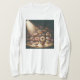 this whimsical womens long-sleeve t-shirt features a surreal painting of dancing doughnuts performing under a theatrical spotlight. perfect for layering or cooler days, this soft top adds a touch of sweet humor to your casual wardrobe. the vibrant colors of the sprinkled and glazed characters make it a standout choice for pastry lovers and fans of quirky food art. enjoy a comfortable fit while showing off your love for desserts with this unique and artistic graphic shirt.