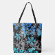 Black, Ocean Blue, Teal och Turq Colorway. Tryckning av tropisk vintage inspirerad av 1960- och 1970-talets altarskjortor. En färglös övergång genom hibiscus blommor uppifrån till grund i formgivningen på en bakgrund av svart och grått med ett vitt övertäckt av blommor. Dessa utformar komen i flera färgrutor.