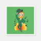 Napkin med en Illustration av en leprechaun som ler glatt och dansar med en grönt kostym, en båge och en bowlareare hatt, med svarta anteckningar och en gult- och orange-regnbåge i gröntens bakgrund. En perfekt som firar Saint patrick's day!