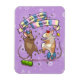 En mjuk magnet. Användan "Anpassa den här mallen" om du vill ändra texten "Lycklig 12:e Birthday Rachel" och skapa en unik, anpassad födelsedagspresent. Två möss i lycklig i party, dans som konetti och ett band faller runt dem, med ballonger spridda på golv, med blommigtens bakgrund.