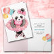 Här är ett sött födelsedagskort för vilket barn som helst! Framsidan har en svart och vit panda som är klädd i en rosa tutu, bun och balett tofflor. Hon håller en sträng med tre briljanta ballonger med färgad. Insidan av kortet innehåller text fält i grått och teal som du kan anpassa eller lämna som det är. Det har också en andra bild av ballongen.
