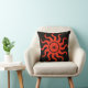 Dekorativ kudde har en vild abstrakt utformning av en dans röd sol på en rent svart bakgrund. De stiliserade strålarna verkar dansa runt det svarta centret. Utformningen upprepas på baksidan.