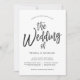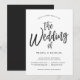 En unik bröllopsinbjudan med dansande typsnittsbokstäver följt av dina unika bröllopsdetaljer i svart och vitt.