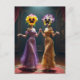 A beautiful pair of women with pansy flowers for a head dancing surreal AI generated art
