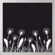 Dandelionblommor. Vita silhuetter på svart. Hand plockade. Väggkonst