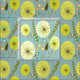 Modern gult-dandelion eller blomkur med grönt grönt löv på ljust grönt bakgrund inspirerade i mitten av århundradet.
