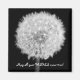 Svart och vit närbild (makro)av en dandelion, med ord "Mall all din önskemål vara sann".