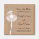 Det här är det samordnande Spara datumet för insamlingen av Dandelion på Burlap bröllop. Det är dekorerat med en flytande dandelion i blomning, vilket antyder magiskt önskemål.