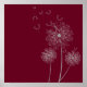 En vacker design av en vit dandelionblomma som blåser i brisen. Den här moderna blommigtens enkla konst är på anpassadets burgniga bakgrund för att beteckna enkelhet, renhet och skönhet.