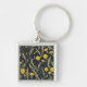 Dandelioner, grönt, gult och svart fyrkantig silverfärgad nyckelring