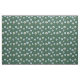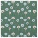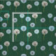 Den här väven eller det här materialet har ett över hela mönster av foton av dandelioner eller dandelionklockor i vitt och limegrönt läge mot en mörk grönt bakgrund.