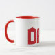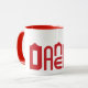 Oh man. Hur kan man beskriva denna mugg. Jag betyder, gör egentligen den rättvisa. Låt oss se. "Är denna stora cylindriska vitkopp, med en röd logotyp, kanten och handtaget men ingen saucer, ett färdigt en dumbom för dig, och ska gör något för dig, om du frågar precis den för att öppna dörren, kör shoppa för dig Etc.",