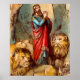 Daniel på lejona poster har Daniel i lejon den med fyra eller fem lejona som vill äta honom. Han har en röd hatt och blå klänning på sig.
