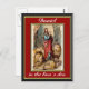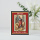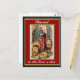 Daniel i lejon den röda och guld-vykortet har Daniel i lejon den med fem lejona som vill äta honom. Han har en röd hatt och blå klänning på sig.
