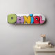 Namn Daniel i färglösa bubbelgummibokstäver. Färg kan ändras.