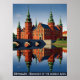 Gå in i en saga med den här eleganten... Danmarks vykort med Frederiksborg Castle. Med sin röda tegelsten torn, grönt spirer och goda vatten-reflektioner firar denna vintage-stil-design romantik och det medeltida Europas historia.