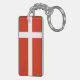 Danmarks flagga, Dannebrog, är röd med ett vitt skandinaviskt kor som sträcker sig till kanten i flagga.