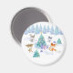 En magnet med en vismisk julscen. Lycklig-skogsdjur som dansar runt ett dekorerat Julgran. Festiv vattenfärgsdesign för helgdag.