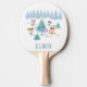 Personlig pingpongpaddel med en vismisk julscen. Lycklig-skogsdjur som dansar runt ett dekorerat Julgran. Festiv vattenfärgsdesign för helgdag.