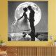 Fira kärlek, passion och tidlös romantik med denna förtrollande svart-vita illustration. Den visar ett silhuettpar som delar en magisk dans under fullmåne, badade i det mjuka skenet från fallande regn. Detta konstverk utstrålar elegans och charm.