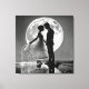 Fira kärlek, passion och tidlös romantik med denna förtrollande svart-vita illustration. Den visar ett silhuettpar som delar en magisk dans under fullmåne, badade i det mjuka skenet från fallande regn. Detta konstverk utstrålar elegans och charm.
