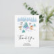Tack för vykortet med en visuell julscen. Lycklig-skogsdjur som dansar runt ett dekorerat Julgran. Festiv vattenfärgsdesign för helgdag.