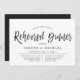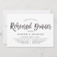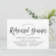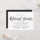 En unik inbjudan till repetitionsmiddag med elegant-skript stil-bokstäver följt av dina unika uppgifter om bröllopsdagen i svartvitt. Den omvända sidan innehåller fast träkol svart som kompletterar temat längst fram på inbjudan.